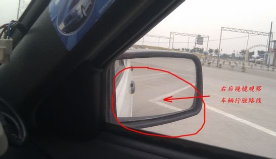 车辆向右后行驶时,可以通过右后视镜观察车身和库角之间的关系和行车路线