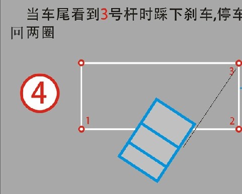 2、紧接着目光看准左侧后视镜,发现4号标杆出现在后视镜的时候,可以选择刹车,迅速的把方向摆正。因为在考试的时候可以停车一次。