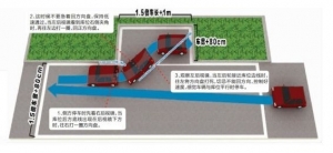 9、车沿左侧前进,当车子右前角过一号线时尽快向右回2圈,第3圈以后,视与二号线的距离来决定打多少轮;