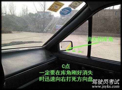 注意:每个人身高不同,加之座位的设置也不相同,故此处要根据下一个点的位置适当提前或延迟打死方向盘。