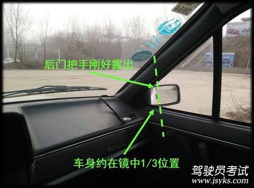3.调整右后视镜,使镜中车身出现在镜子约1/3位置。后门把手在镜子上沿露出。