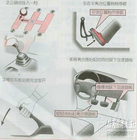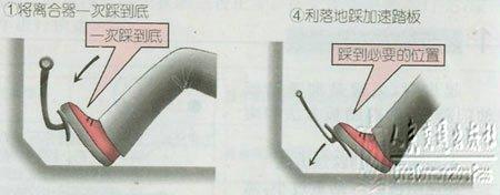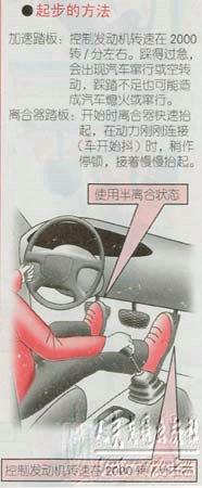 加速踏板的踩踏量过小,离合器抬得过急,容易引起发动机熄火。相反,加速踏板的踩踏量踩得过大、离合器连接过急,容易引起汽车窜行。这些都必须引起注意。
