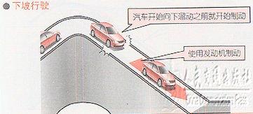 3)比较长的下坡路段主要依靠发动机制动,以脚制动作为补充。